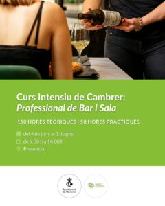 El curs té per objectiu formar cambrers capaços de desenvolupar de manera professional les tasques de bar i sala, aplicant les normes higienicosanitàries, gestionant el servei d’aliments i begudes, i realitzant operacions bàsiques de preparació, emmagatzematge i atenció al client, tot completant una estada de pràctiques professionals.