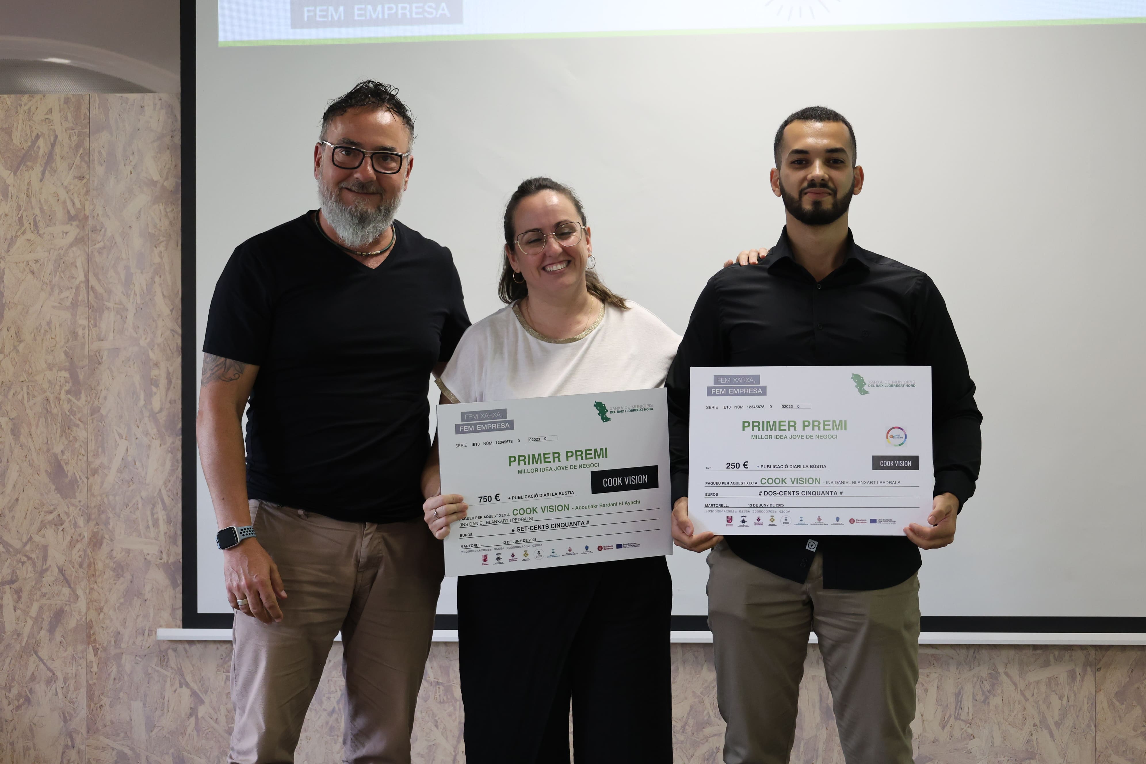 - 1r premi (2.250 € a repartir entre l’alumnat i el centre): Cook Vision de l’Institut Daniel Blanxart i Pedrals (Olesa de Montserrat), una iniciativa que combina tecnologia i gastronomia amb ulleres de realitat augmentada per guiar els usuaris durant la preparació de receptes.
