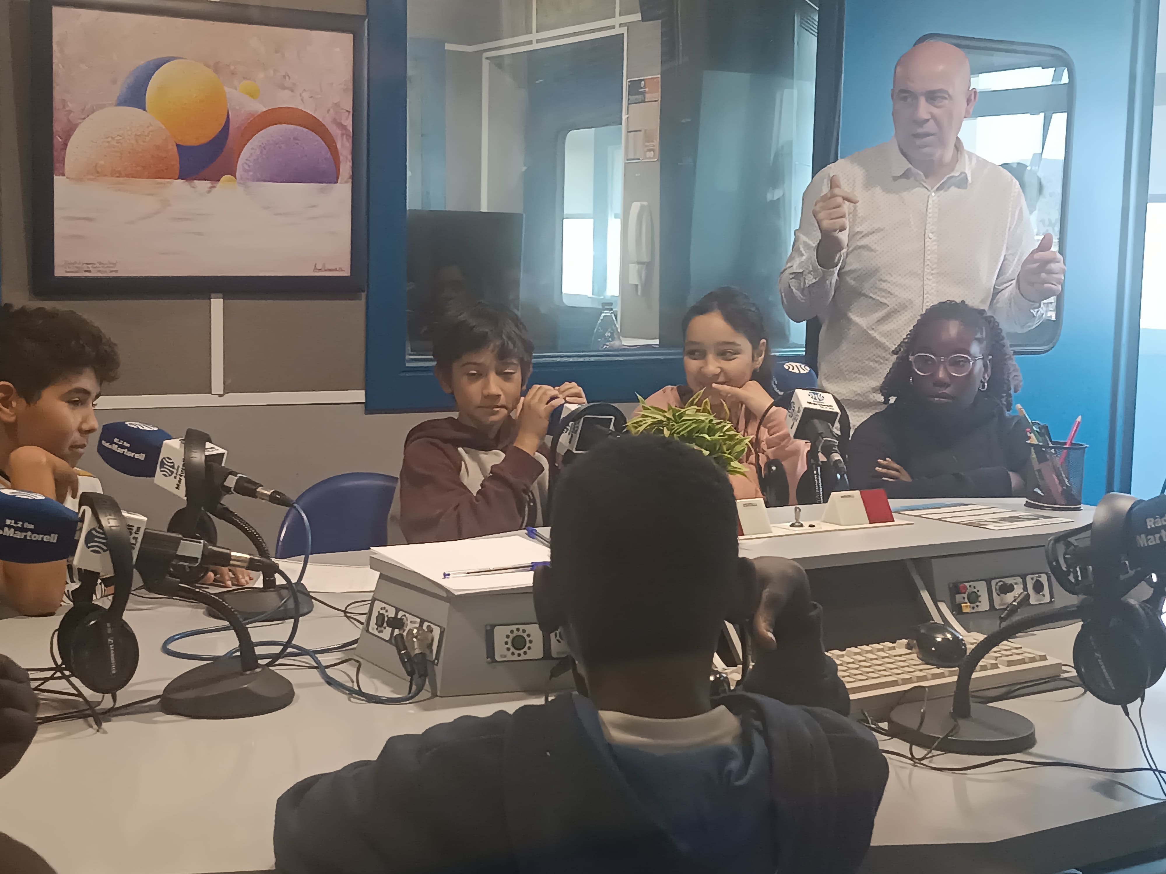 Els alumnes de 5è de primària participants en el projecte Cultura Emprenedora a l’Escola (CUEME) han visitat aquest mes de maig els estudis de Ràdio Martorell 91.2 FM per gravar la falca publicitària del seu mercat ambulant. El proper dijous 29 de maig, de 9.30 a 13.00 h, a la rambla de Les Bòbiles, els cooperativistes muntaran parades per vendre els seus productes fets a mà, destinant un percentatge dels beneficis a entitats socials.