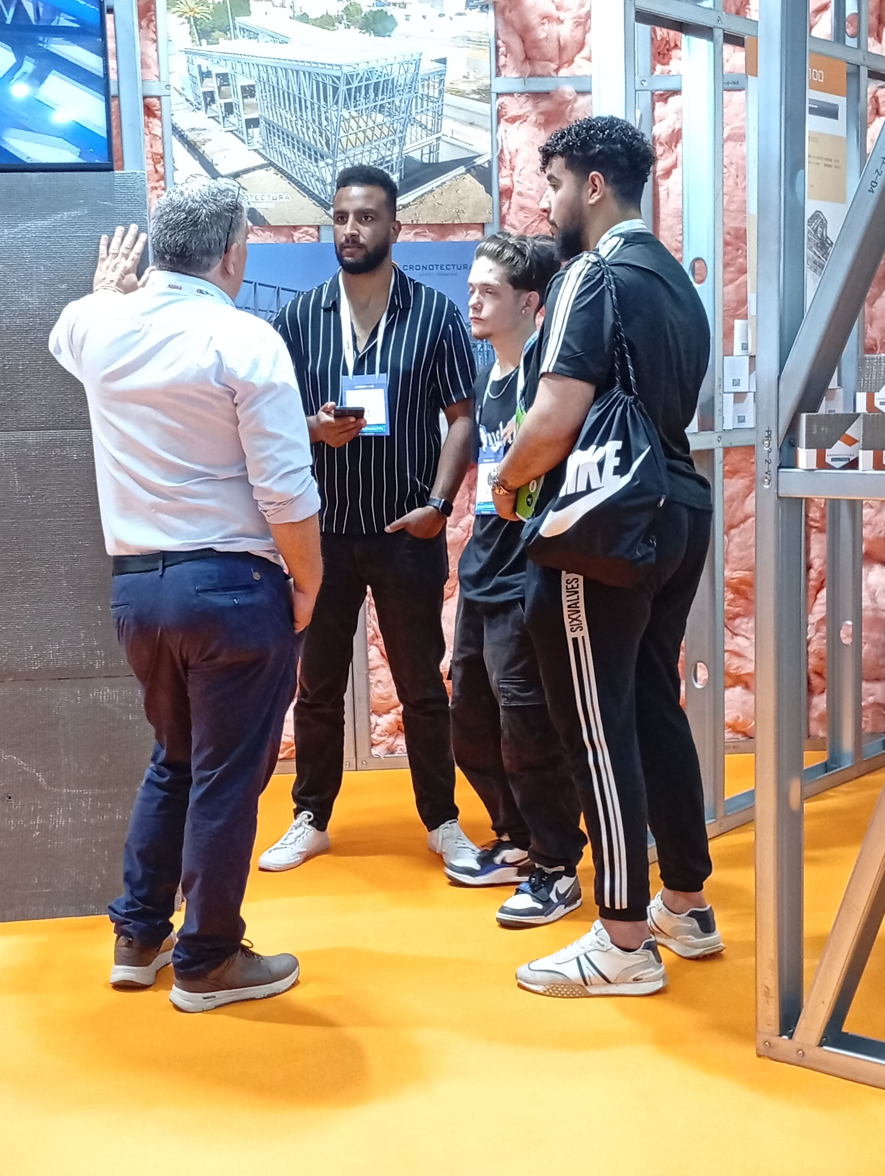 Durant el curs, els alumnes també han assistit al saló Construmat, referent en innovació i sostenibilitat dins del sector de la construcció. La visita els ha permès descobrir noves tecnologies i materials, com panells d’imitació de marbre i sistemes constructius prefabricats. Un dels moments més valorats ha estat la possibilitat de provar un simulador de retroexcavadora de la Fundació Laboral de la Construcció, una eina que els acosta a la realitat de la maquinària d’obra.