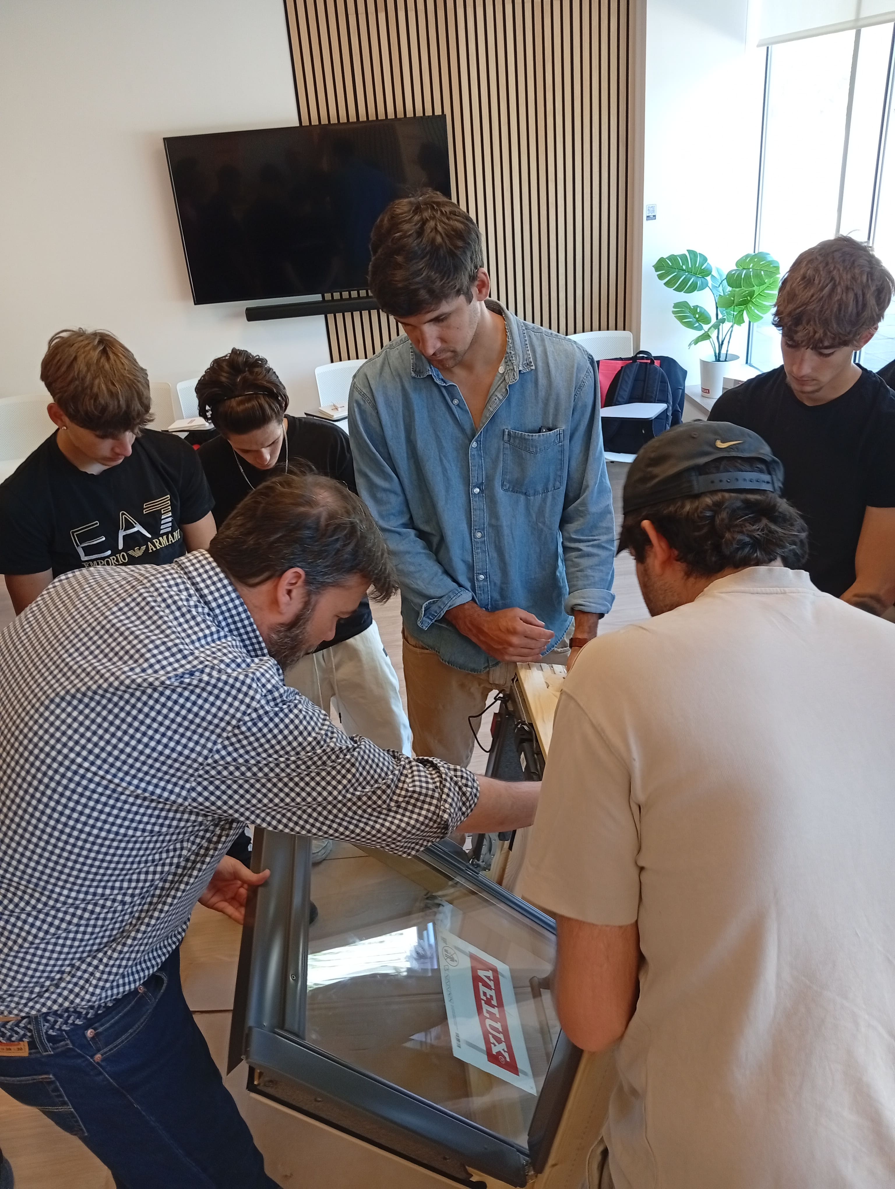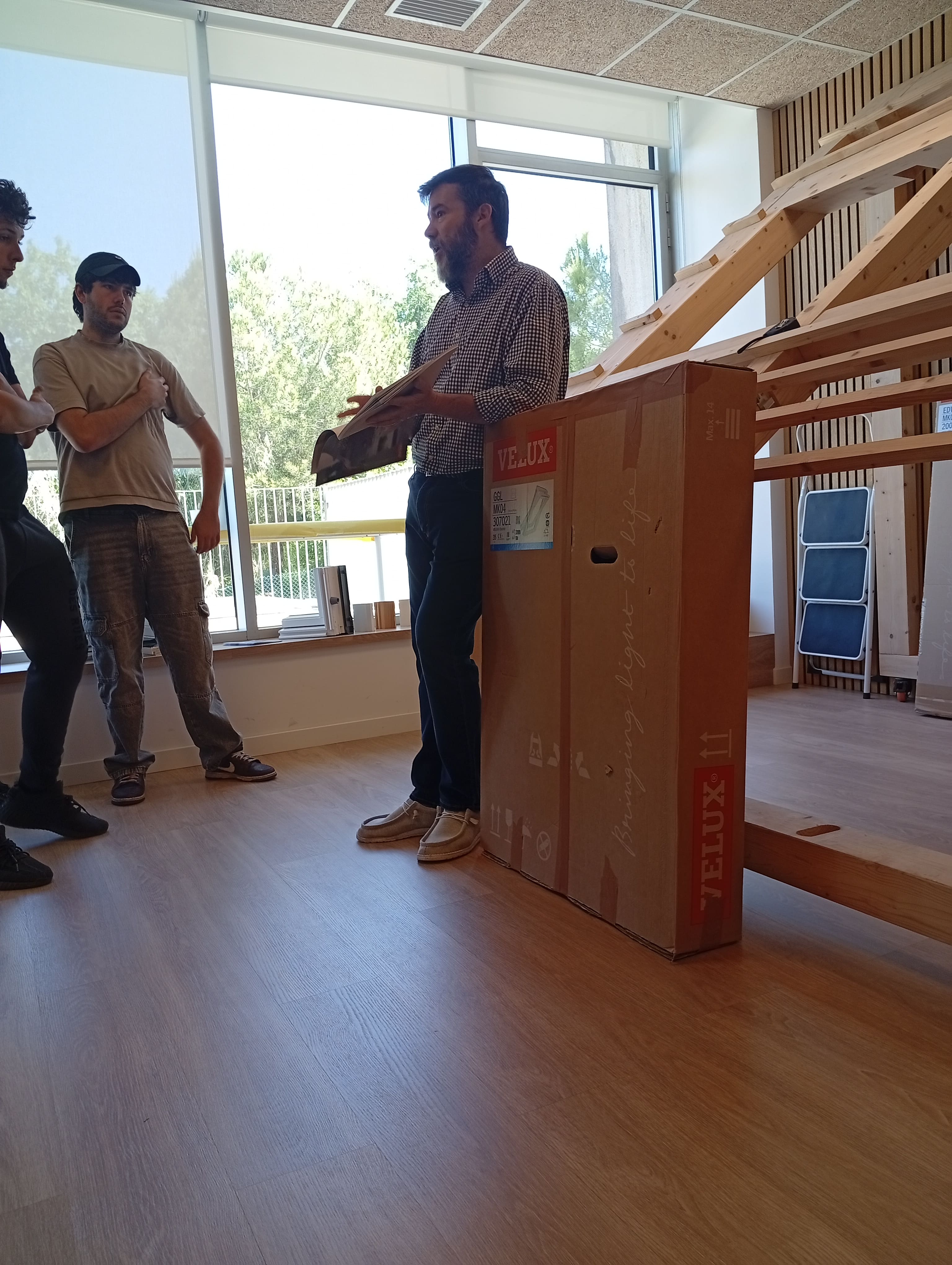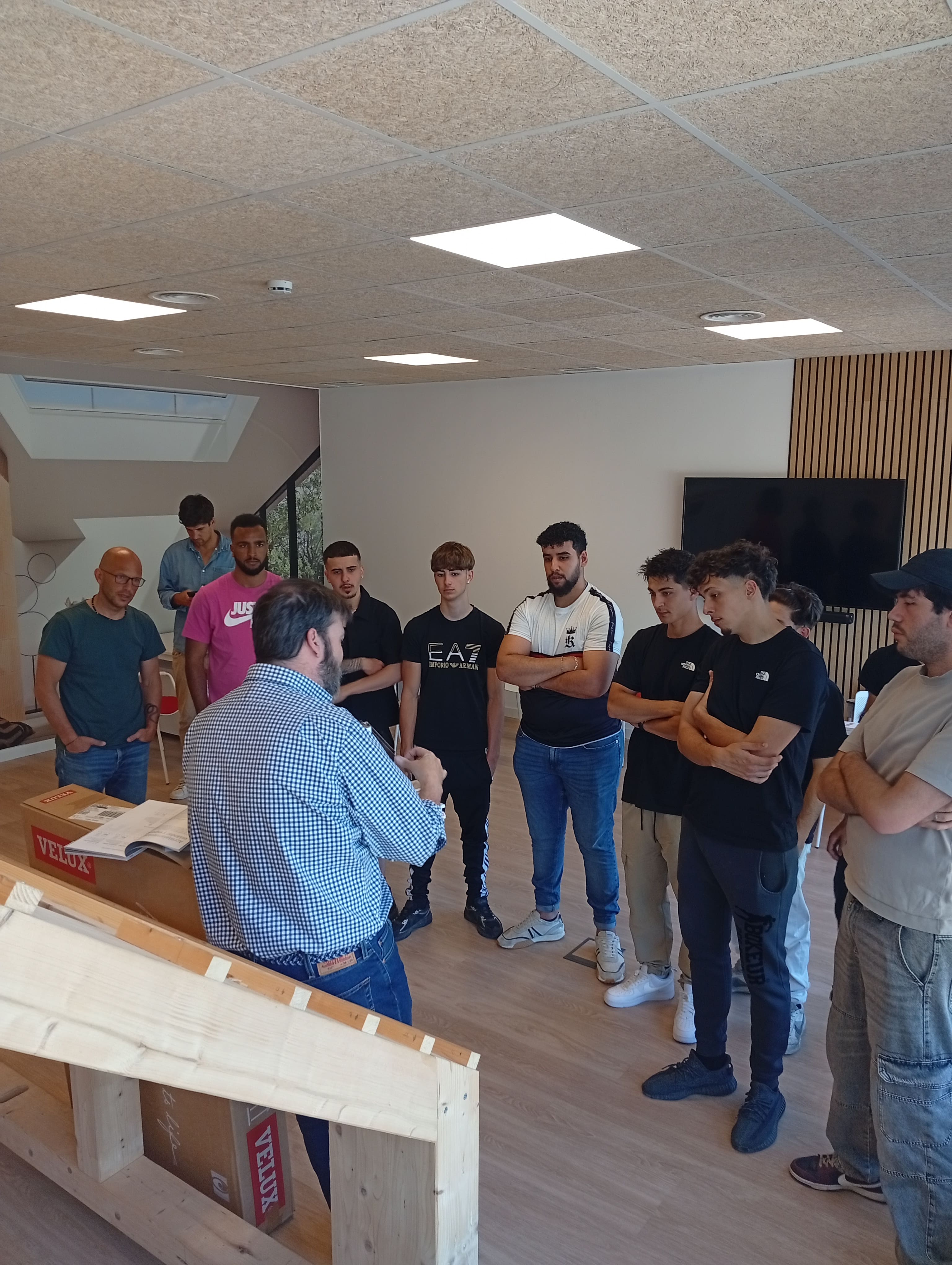 A més, el grup ha participat en una col·laboració formativa amb l’empresa Velux, on han rebut un curs intensiu sobre la instal·lació de finestres de coberta. La formació, impartida a les instal·lacions de Velux, ha culminat amb una primera pràctica real a la Torre Bassols, on els alumnes han treballat en la col·locació d’aïllament, sistemes Onduline, teules i finestres de coberta.
