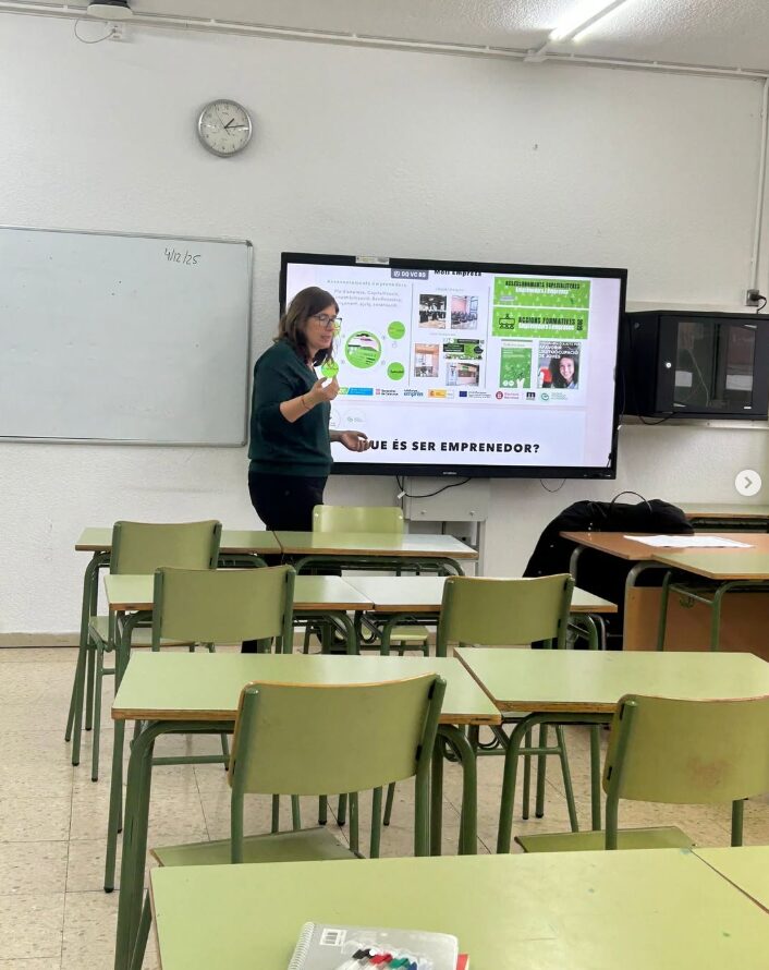 En aquest marc, s’han dut a terme sessions formatives a l’INS Joan Oró, concretament a les classes de l’optativa d’Economia, on l’alumnat ha treballat la iniciativa emprenedora i el desenvolupament d’idees de negoci. Paral·lelament, els grups de 4t A i 4t B de l’Institut Maria Canela han visitat el Molí Fariner per participar en els tallers d’emprenedoria impartits a les instal·lacions de l’equipament municipal.
